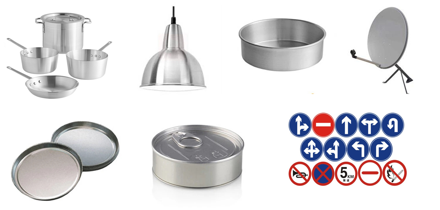 It is wildly used for Deep drawing cookware&kitchenware, spinning cookware, kitchen utensils,pizza pan, pressure cooker, bakeware, road sign, Building Material, Insulation, traffic sign, etc.